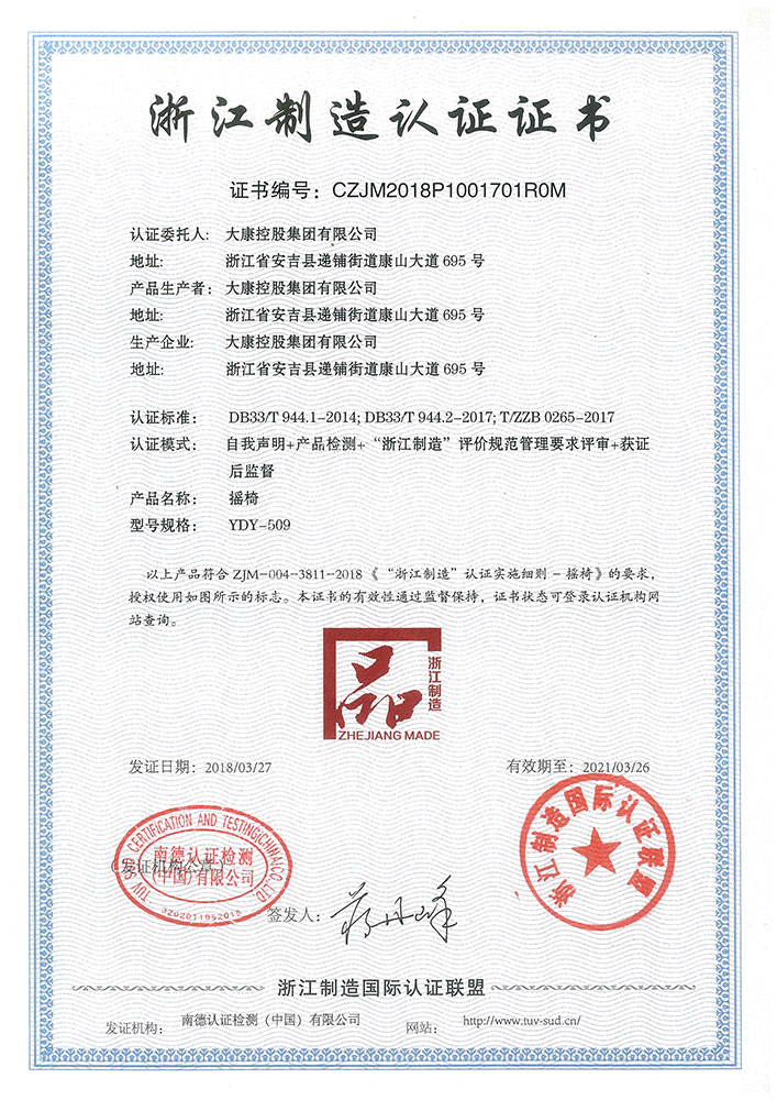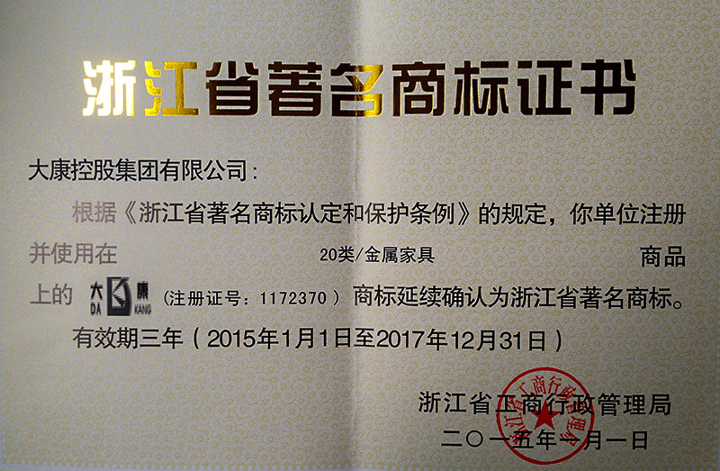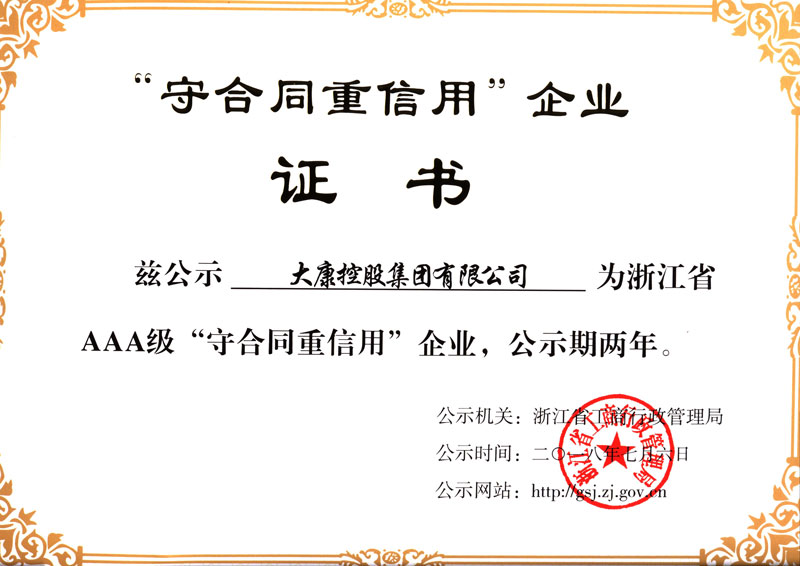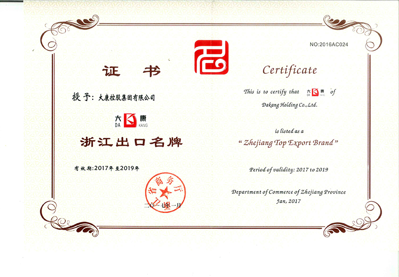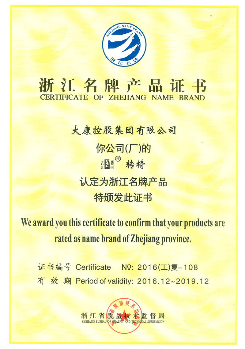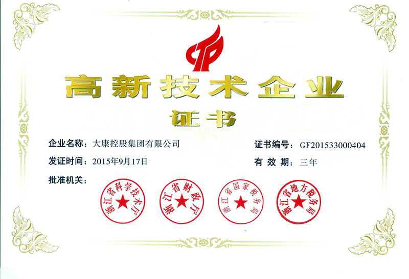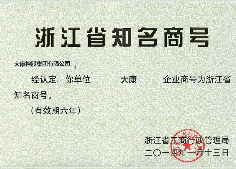 公司是國家高新技術企業(yè);“大康”商標是中國馳名商標、浙江省著名商標;“大康”產(chǎn)品是浙江名牌產(chǎn)品、浙江省出口名牌;公司建有省級技術中心、省級工業(yè)設計中心、是國家知識產(chǎn)權示范企業(yè),獲得湖州市政府質(zhì)量獎等榮譽稱號。公司具有完善的生產(chǎn)管理體系,先后通過ISO9001、ISO14001、OHSAS18001等管理體系,擁有一批經(jīng)驗豐富的管理人才,優(yōu)秀的設計人員和訓練有素的高級技術人員,生產(chǎn)一線的職工技術過硬、質(zhì)量意識強、有團隊精神。