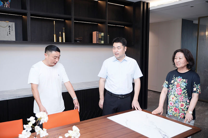 參觀完辦公家具和酒店家具展區后,縣委副書記、縣長寧云一行又來到了大康板式科技車間,對中國古老的榫卯技藝和現代工藝設備的結合產生濃厚的興趣,毛如佳董事長強調:“我們在扎實推進基礎再造工程和重大技術攻關的同時,在基建,研發,人才等方面持續投入,加強技術創新和管理創新,為爭取和創造更大的效益繼續努力。”